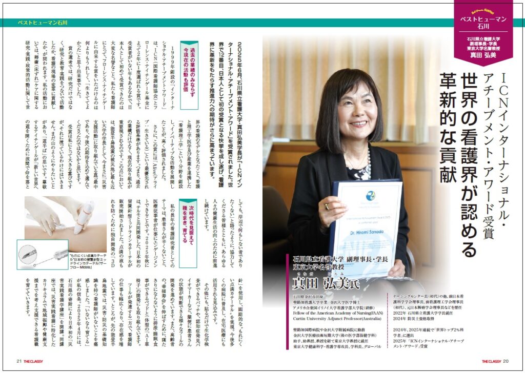 この度、「THE CLASSY」2026年1月号Vol.72 において、世界の看護界に認められた真田弘美学長の革新的な貢献が注目され「ベストヒューマン石川」として紹介されました。