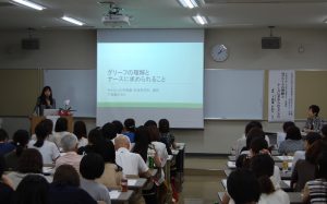 公開講座では下稲葉先生から、喪失や悲嘆に対する理解やそれを抱えた方に対する関わり方、子供の悲嘆の受け止め方などについて具体例を示しながらわかりやすく講演していただきました。また、グリーフに関わる看護職自身もケアされる存在であることを話され、会場からは大きくうなずく姿が見受けられました。