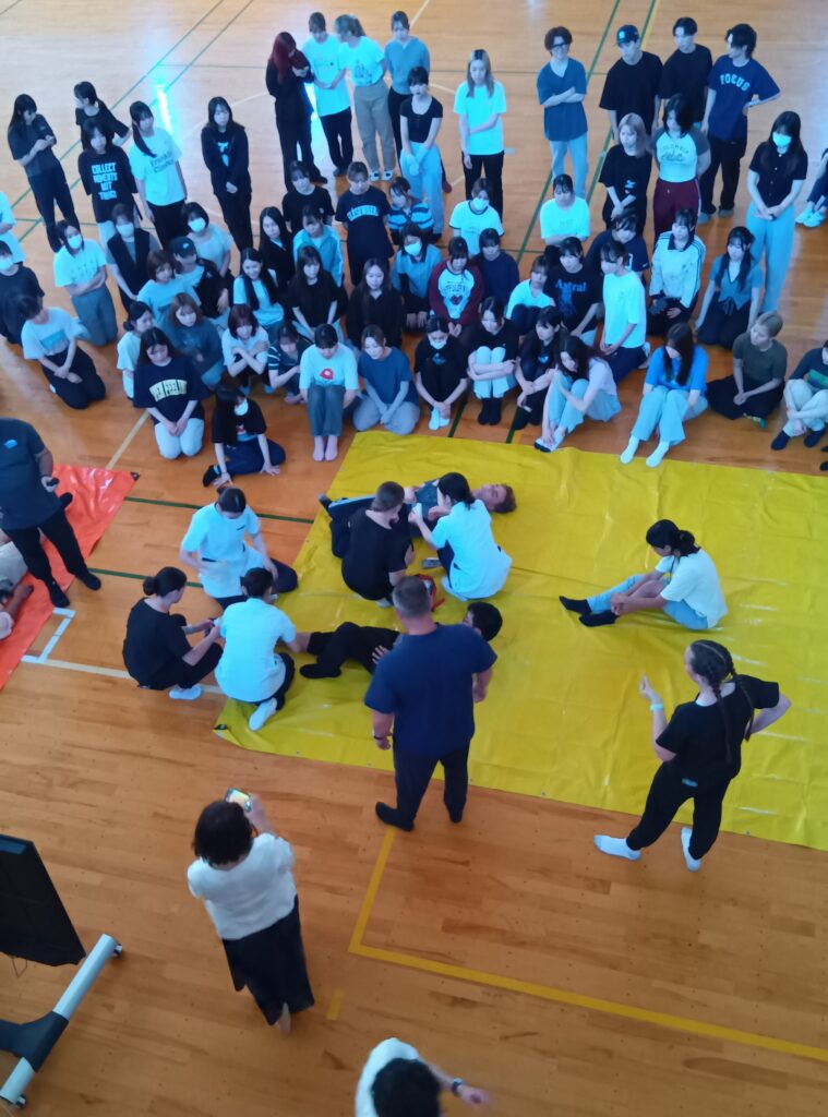 2025年6月26日、3年次「災害看護論」の中で、ブリガムヤング大学(BYU)の教員・学生とともに大規模災害シミュレーションに関する演習を行いました。