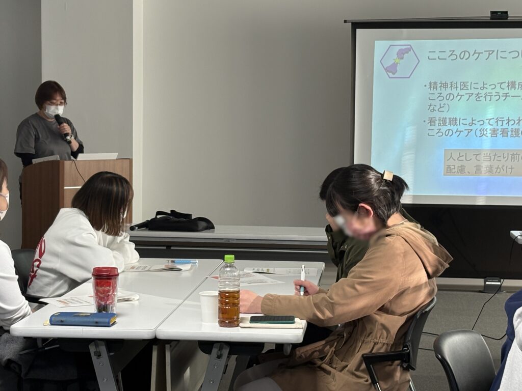 能登地区で行ったセミナー同様、看護職誰もが災害看護の基本を身につける必要性と危機管理の基本的考え方についての講義、病院で災害があった場合の初動対応シミュレーション、避難所運営シミュレーション、心のケアなど、多岐にわたる災害看護の基本について、演習を中心に行いました。