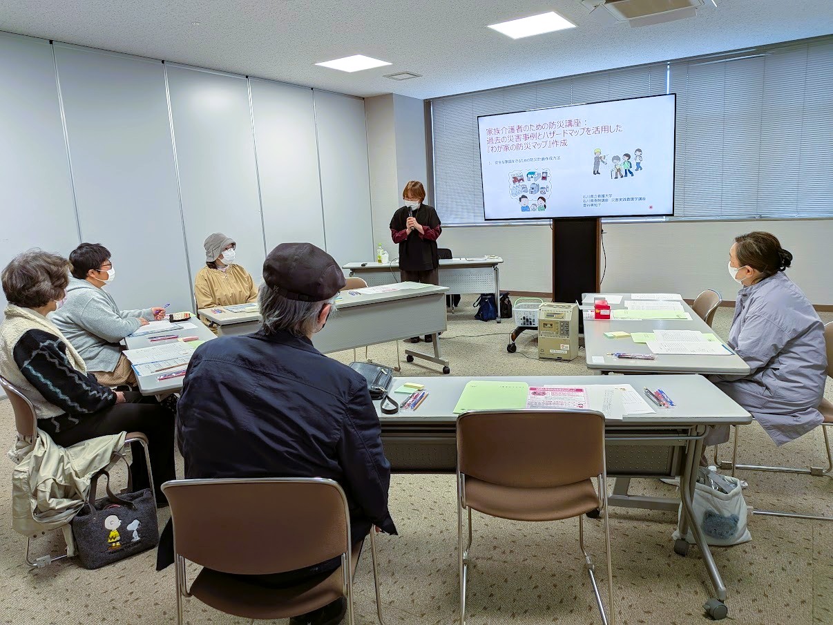 2026年3月23日(月)、登谷講師がかほく市長寿介護課にて、要介護の方々を介護するご家族を対象とし「過去の災害事例とハザードマップを活用した『わが家の防災マップ』作成」をテーマに防災講座を実施しました。