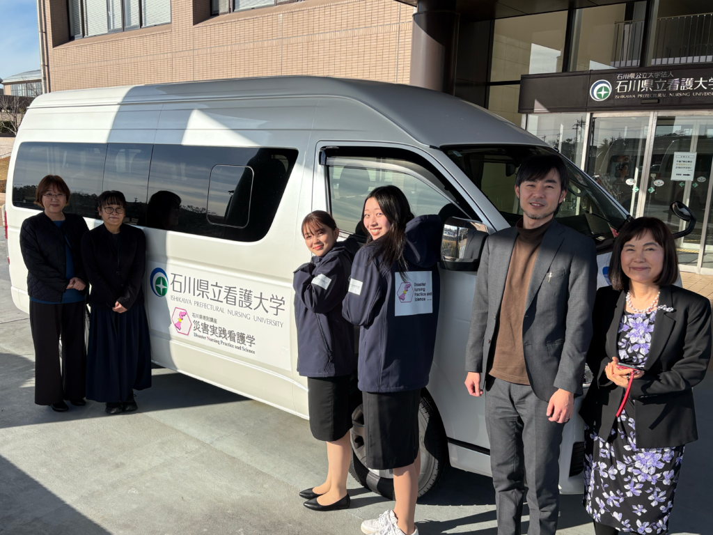 発表後、真田学長と一緒に新しく導入した活動用車両の前で記念撮影を行いました。
